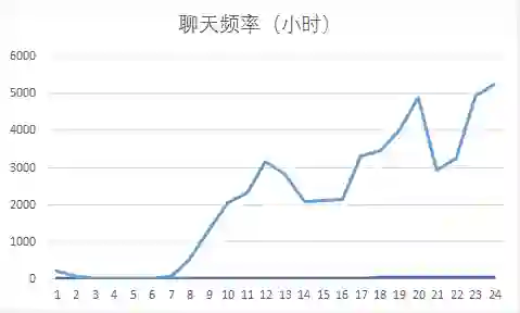 不知道大家有没有发现,我们在聊天的时候,经常是这一秒忘了上一分钟说了什么话题。翻翻聊天记录,我经常的内心os是:“嗯?为什么突然说到这?卧槽,这也能扯到?!”当时的心路历程恐怕不是几段跳跃的聊天记录文字能够回忆起来的。所以说:女生之间的聊天话题总是飞崖式跳跃的。(第二条规律了!)那么我们在一天中的哪个时间段聊天频率最高呢?