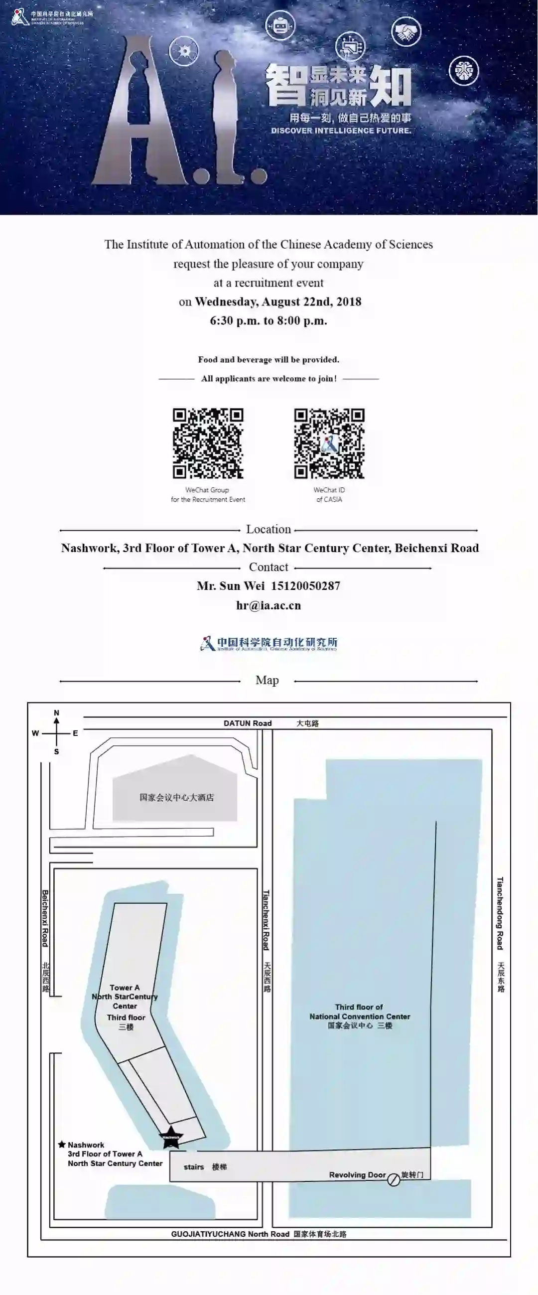 On August 22nd, we will host a reception for introducing the institute and our recruitment plan. All information is posted below.