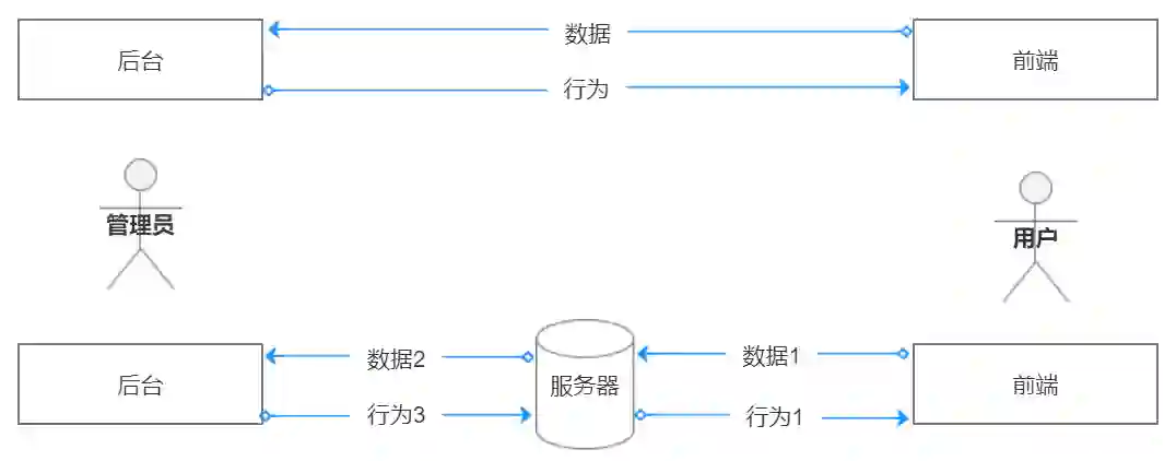了解后台必须熟悉前端业务,前端偏向用户(功能操作)查看信息、提交信息,而后台侧重管理员(数据处理)创建信息、处理信息,而服务器(信息传递)主要是请求信息、响应信息。