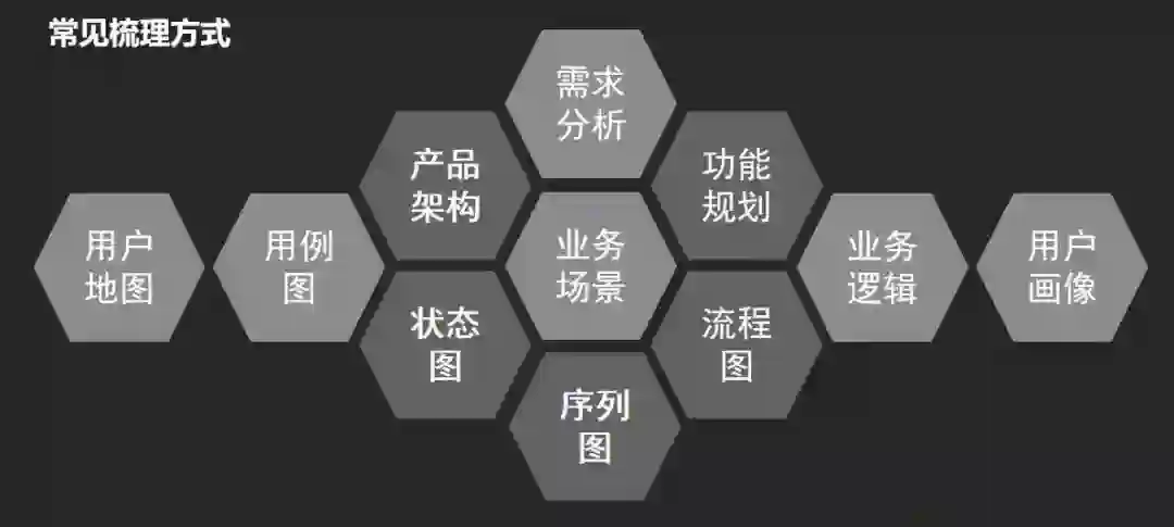 对产品经理而言,梳理业务逻辑更多是改变自己的设计策略。常见的梳理业务方式有需求分析、场景分析、架构设计、功能规划、UML建模、用户地图、交互自查等。