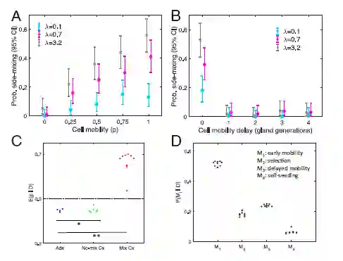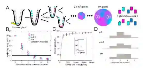 研究人员对19个结直肠癌患者肿瘤细胞的多区域和单个腺体数据进行近似贝叶斯计算,指出早期肿瘤细胞的特异性突变对肿瘤转移的影响。研究人员使用基因组测序技术在大多数侵入性样本中发现了早期异常细胞移动,并发现与其相关的特异性突变。