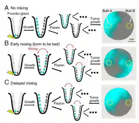 研究人员发现良性肿瘤的子细胞与母细胞分裂后可与母细胞标保持相似的状态,并且不会互相混合,这些肿瘤的最终突变形式为半球形,在肿瘤边缘很难检测到相同的特异性突变。