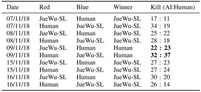 研究者邀请了一只荣耀王者水平的高分段玩家组成的队伍与JueWu-SL进行了反复测试,结果如下: