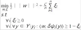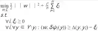 其中判别函数,w 是参数向量,而 Ψ(x,y) 可以看成是输入输出对的特征表示,代表将输入输出对合并起来的特征向量,它的形式取决于具体问题。 一般会假设