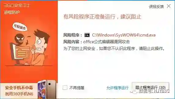 Office漏洞成黑客攻击利器 360安全卫士全面拦截防护