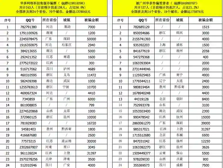 在佟女士从各个受害者维权群统计的不完全数据显示,受害者遍及北京、广州、深圳、义乌、上海、武汉等超过24个省份在内的70多个城市,涉案金额已经超过500万元。
