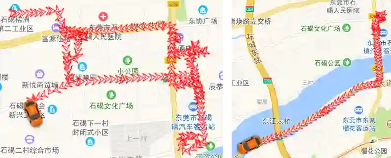 图左侧大概率为快递员轨迹,图右侧大概率为汽车轨迹。GPS点的空间分布能够为轨迹分类提供有效信息。因此,我们采用空间分布模式构建模型,探索基于深度学习的轨迹分类。