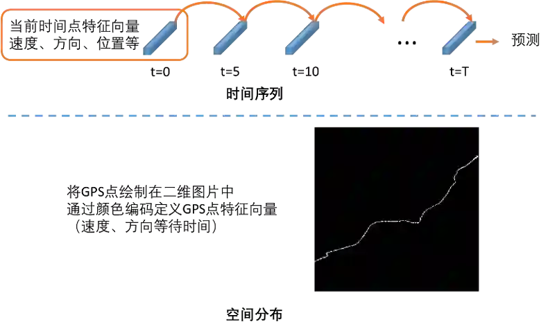 深度学习的优势在于能够从原始数据中学习到有效信息,无需人工挖掘特征。针对轨迹数据的特点,存在两种观察轨迹的方式,分别是时间序列与空间分布。