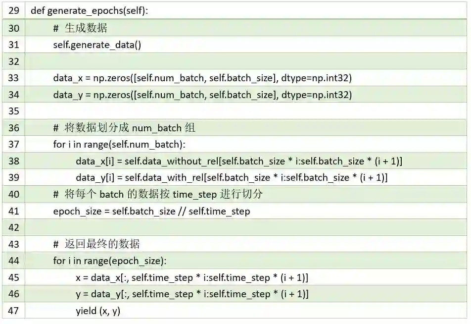 4. 我们定义“generate_epochs”方法处理生成的数据:
