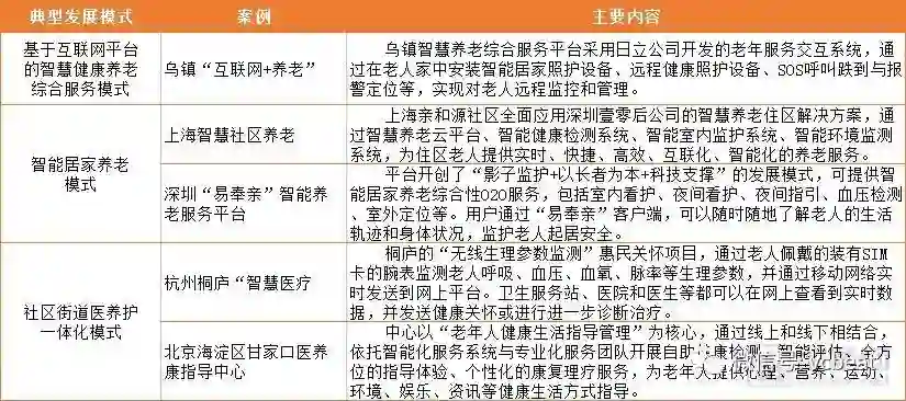 不同模式的代表性项目(来源:《智慧养老产业发展白皮书》)