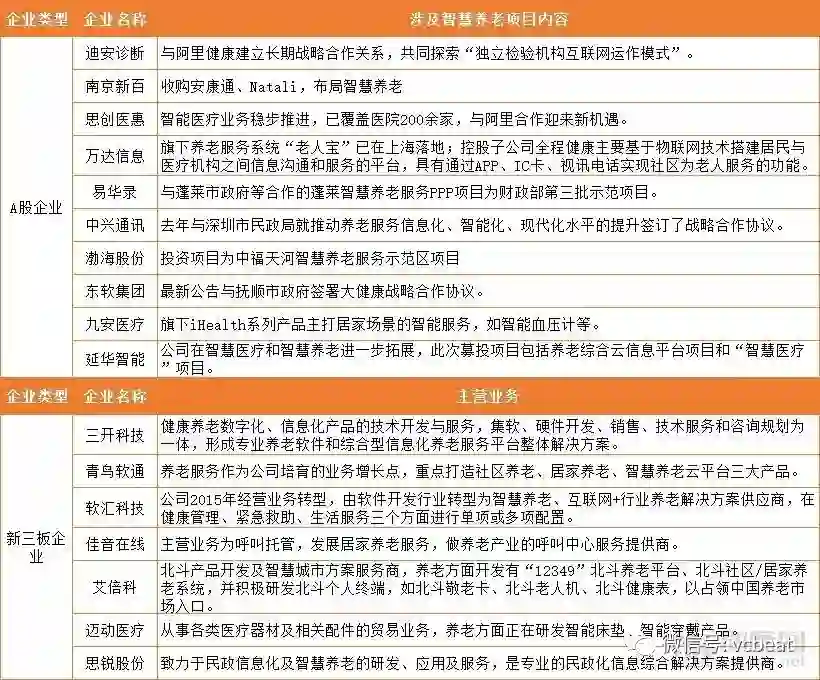 以下是动脉网记者列举的部分涉及智慧养老业务或服务的上市企业及初创企业。
