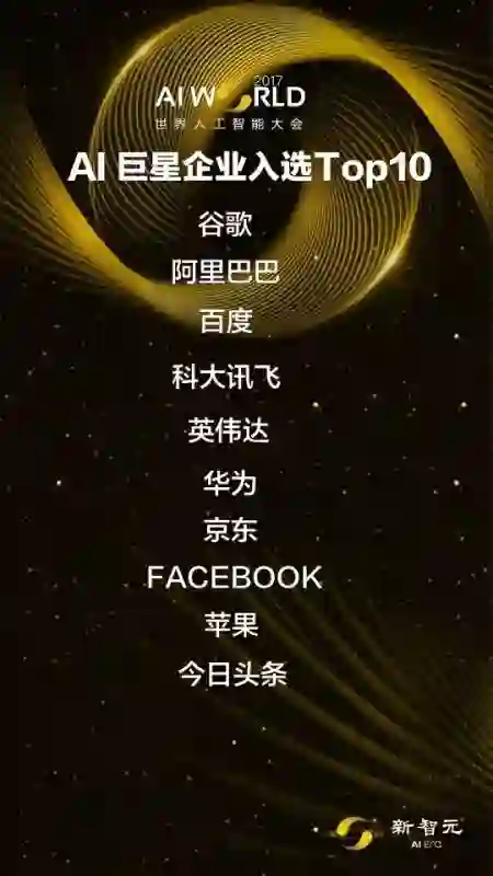 2017年,科技巨头们继续开放AI技术平台,开源深度学习框架,搭建AI云赋能中小企业,推动AI民主化的历史进程。在中国新一代人工智能规划出台、各国政府将AI定为国策的背景下,多家企业巨头以All In AI的决心,全面布局AI,并深入垂直领域的智能+探索。60载沉浮之后,人工智能进入“应用元年”,AI巨星企业无疑是这场深刻产业变革的引领者和中坚力量。AI World 2017世界人工智能大会 “AI 奥斯卡”巨星企业Top 10分别是:谷歌、阿里巴巴、百度、科大讯飞、英伟达、华为、京东、Facebook、苹果、今日头条。
