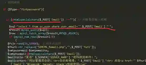 这个功能对应的文件为web_mail.php这个文件,看一下代码这个漏洞是如何出现的