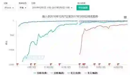 App《狼人杀2017》付费为1元,16年2月2日上线,共12个版本,其榜单变化如下: