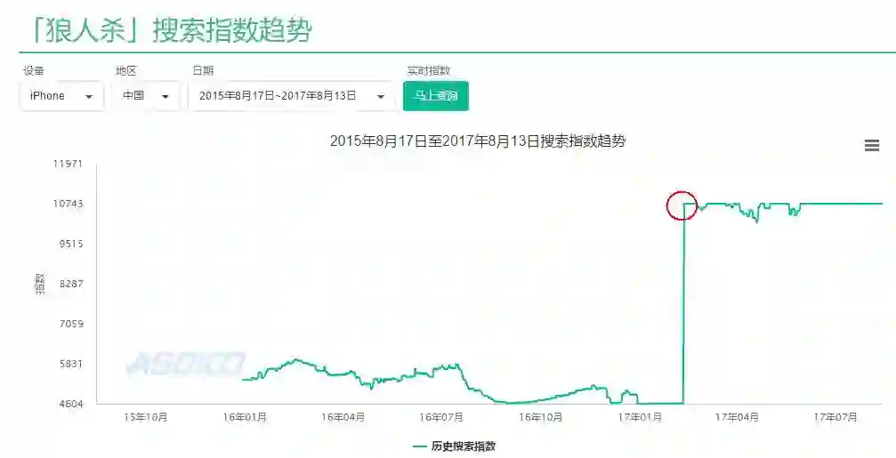 16年6月开始第二波增长——狼人杀百度指数由日常5000+跳至10000+——不太清楚具体事件,但是百度指数出现了飞跃,并在之后持续增长。