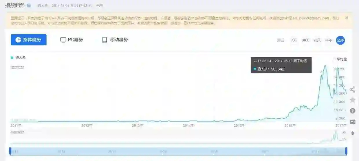 狼人杀的百度指数增长由移动端带动,PC端并没有受到影响。