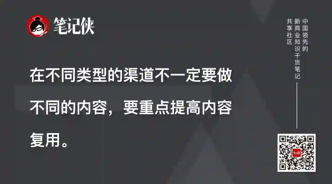 在不同类型的渠道不一定要做不同的内容,要重点提高内容复用。