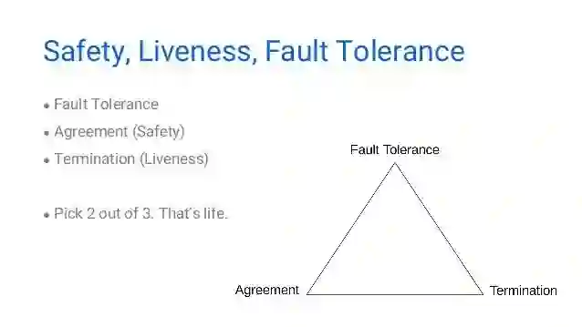 从另一个角度来理解,FLP实际上考虑了分布式系统的3个属性:安全(safety)、活性(liveness)、容错: