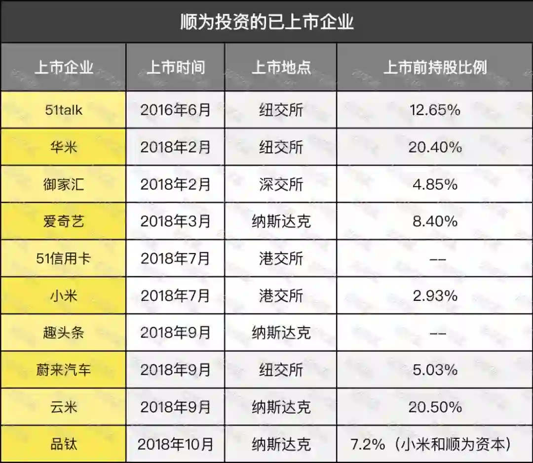 这其中不乏“爆款”,目前的投资已经包括51talk、趣头条、蔚来汽车、爱奇艺等10家企业已经实现IPO。