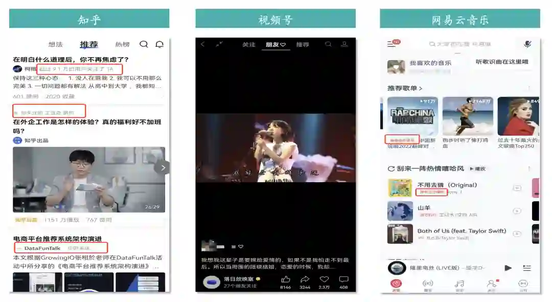 行业权威:这类主要用在一些内容和媒体领域,一种是将一些行业大V关注或点赞过的内容推荐给其他用户;一种是基于用户现有关注的一些大V,从他们历史曾经点赞过的内容中寻找和用户兴趣爱好匹配度比较高的物料进行推荐,然后附上推荐理由,可以进一步提升点击率;