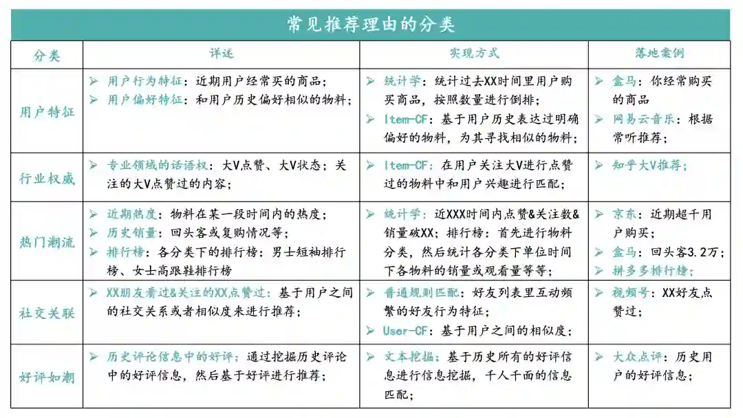 市面上这么多推荐理由,我们可以将其分为哪些大类了?又如何去挖掘出这些推荐理由了?