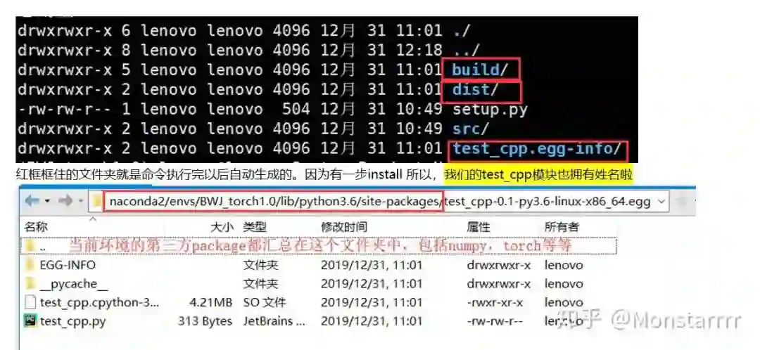 这一步其实是包含了build+install执行的是先编译链接动态链接库,然后将构建好的文件以package的形式安装存放再 当前开发环境的package的集中存放处,这样就相当于生成了一个完整的package了。和其他的如numpy,torch这些package没什么两样。