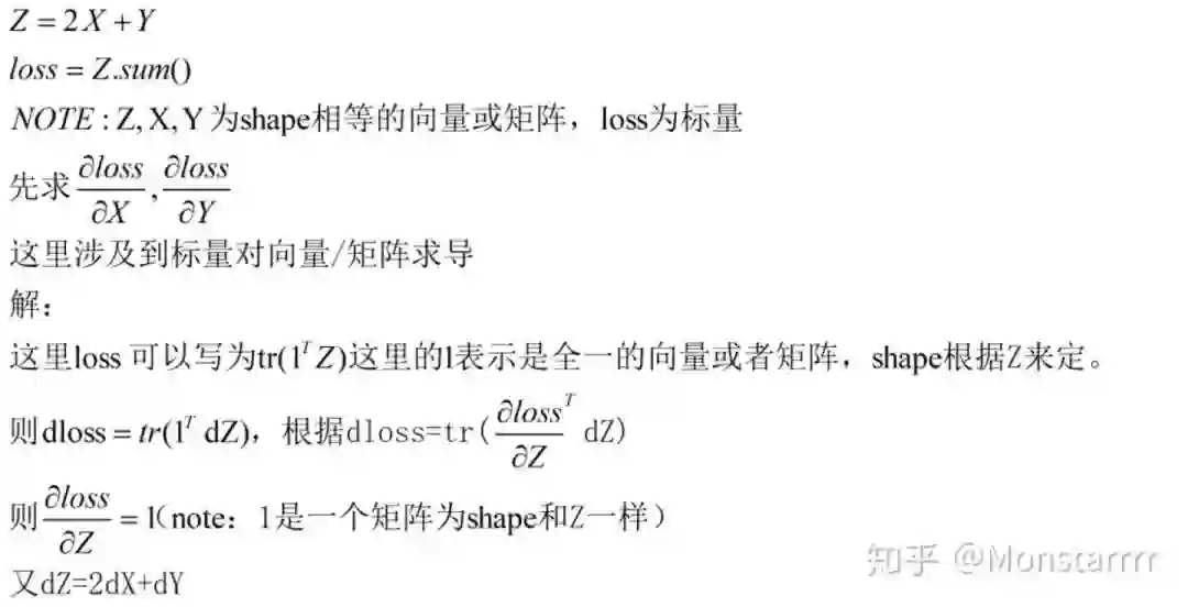 最后补充一点,关于求导,标量对标量的求导就不用多说了,这里主要是标量对向量/矩阵的求导。