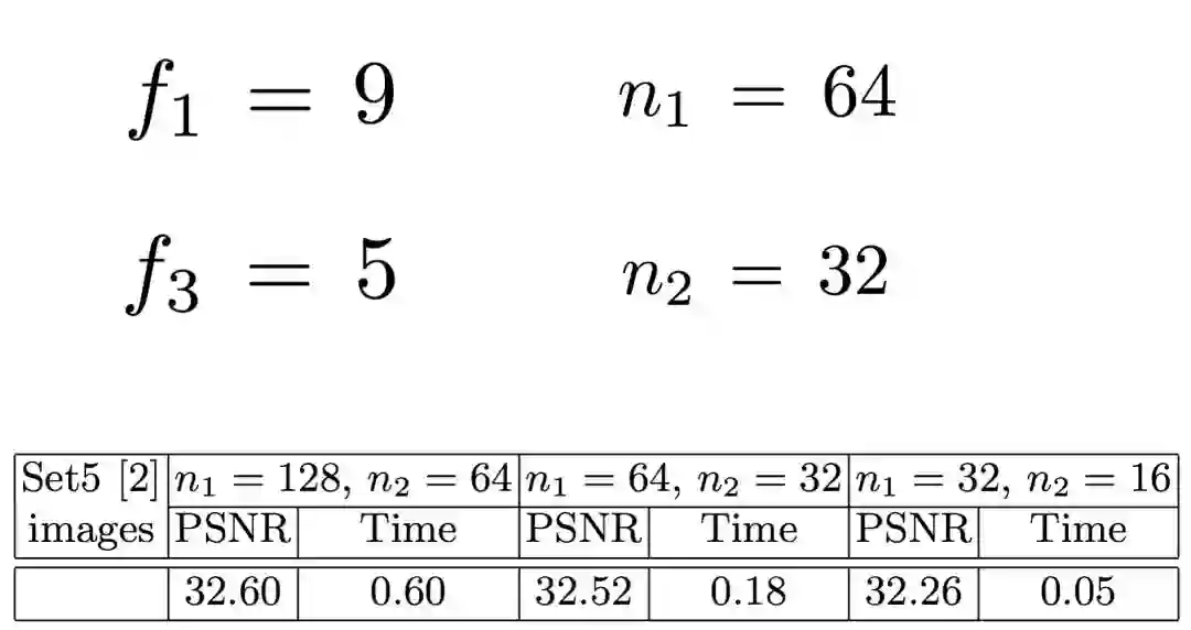特征提取:低分辨率图像经过二项式差值得到模糊图像,从中提取图像特征,Channel 为3,卷积核大小为 f1*f1,卷积核个数为 n1;