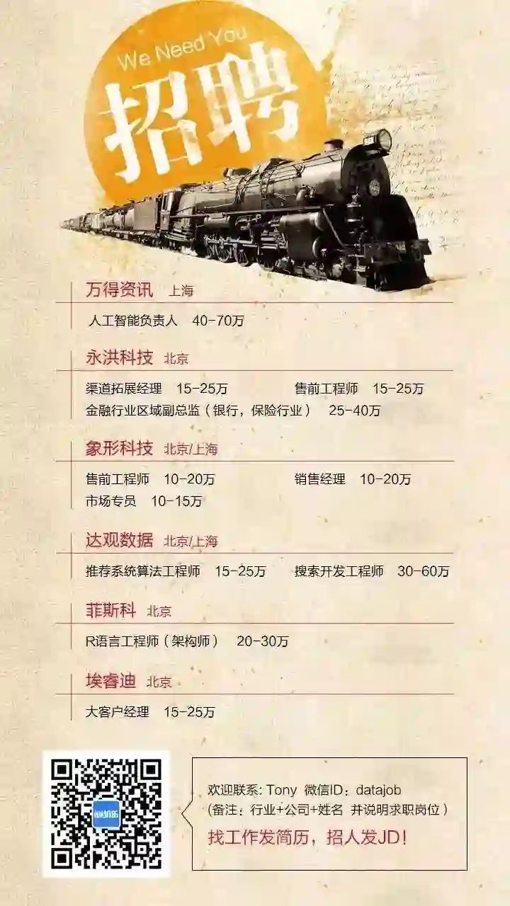 datajob(备注:城市+职位+姓名)或发简历到:job@hellobi.com