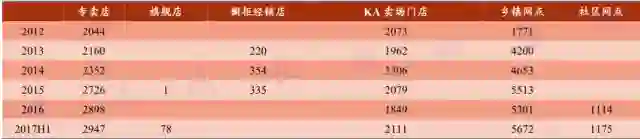公开数据显示,2012-2017年,华帝的专卖店和KA卖场门店数量一直维持在2000家的规模左右;