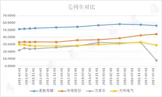 没有对比就没有伤害,再看看华帝竞争对手的毛利率,就知道华帝的管理层有多牛了。