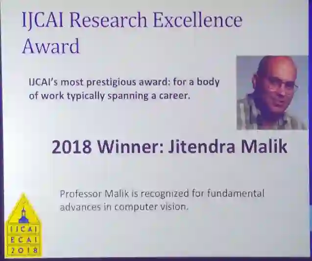 2018年卓越研究奖的得主是来自加州大学伯克利分校EECS的Jitrenda Malik教授。Malik教授为计算机视觉的进步做出贡献而被认可。Malik教授于2017年12月加入了Facebook人工智能实验室(FAIR)。