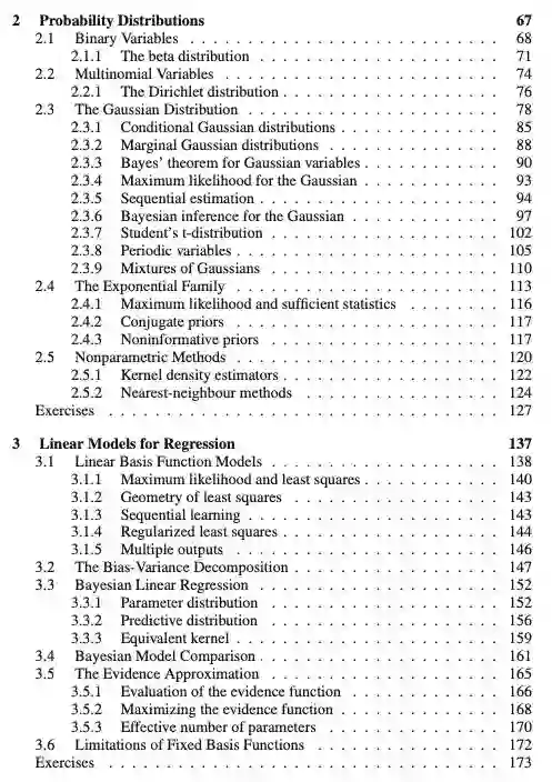 线性基函数模型、偏置方差分解、贝叶斯线性回归、贝叶斯模型比较、The Evidence Approximation、固定基函数的局限性