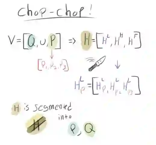 确实如此!为了解决这个问题,作者首先将隐层分割成了单独的的段落/问题块,分别对应文章或问题中的每一个单词p1、p2。