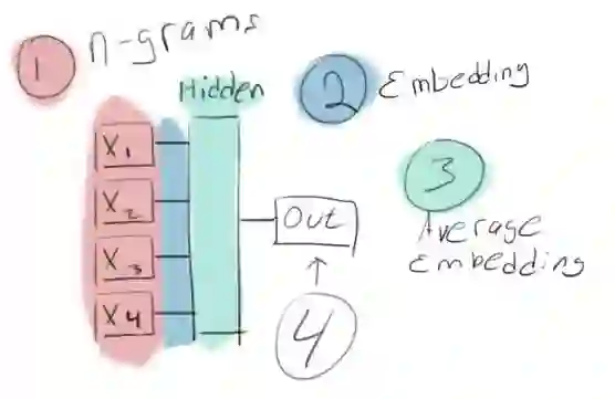 FastText 利用上面得到的这些嵌入创建了一个「平均嵌入」的隐层。