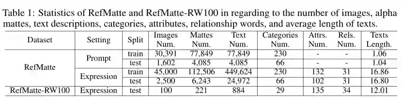 2.5 Statistics of the RefMatte dataset and RefMatte-RW100 test set