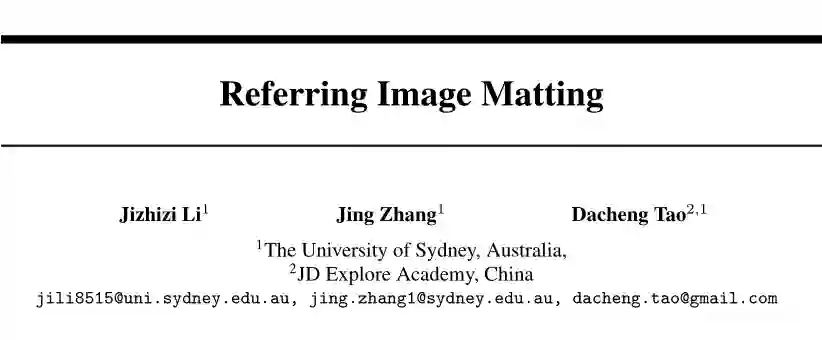 图像抠图是指提取图像中准确的前景。当前的自动方法倾向于不加区别地提取图像中的所有显著对象。在本文中,作者提出了一个新的任务称为 参考图像抠(Referring Image Matting,RIM) , 指的是提取特定对象的细致的 alpha 抠图,它可以最好地匹配给定的自然语言描述。然而,流行的 visual grounding 方法都局限于分割水平,可能是由于缺乏高质量的 RIM 数据集。为了填补这一空白,作者通过设计一个全面的图像合成和表达生成引擎,建立了第一个大规模挑战性数据集 RefMatte,以在当前公共高质量抠图前景的基础上生成合成图像,具有灵活的逻辑和重新标记的多样化属性。