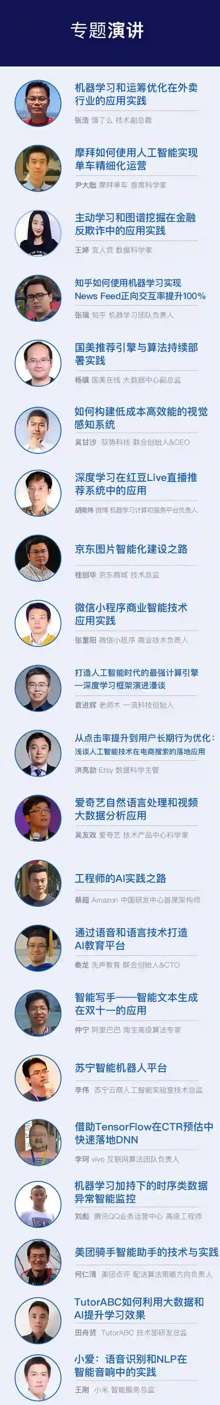 AICon 还邀请了来自Google、Amazon、Esty、BAT、360、京东、携程、浪潮、小米、美团、知乎等知名互联网公司的近 40 位 AI 技术负责人分享他们的 AI 落地实践经验,旨在帮助参会企业根据这些经验确定自己的选型方案,提前预估相关的风险和收益,实现 AI 技术落地。