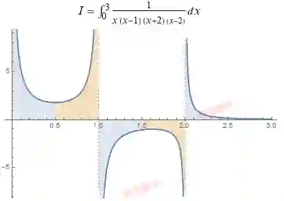 如果函数 f 在区间 [a,b] 内有破裂点 c, 需要把这个积分分成两部分 [a,c] 和 [c,d], 并且只有当这两部分积分都收敛时候, 对 f 的积分才是收敛的. 如果任何一个发散, 那么整个积分都是发散的.