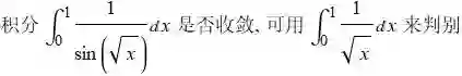 如果积分函数 f(x), 它的瑕点仅仅在 a 点, 那么反常积分收敛还是发散, 如果能找到一个渐进函数 g(x) 进行判别, 即 g 的结论也适用于 f 函数. 比如下面例子: