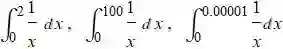 一个反常积分在有界区间的收敛和发散是由接近破裂点的走势决定的, 所以下面几个积分都是发散的.