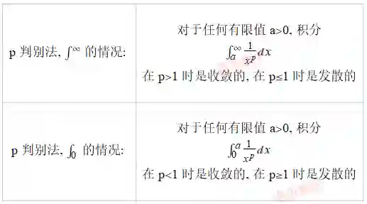 上面两种判别法基本策略都是选择一个能与函数 f 相比较的函数 g, 并且 g 相比 f 会更容易判别收敛性. 最常用的 g 函数是 x−p