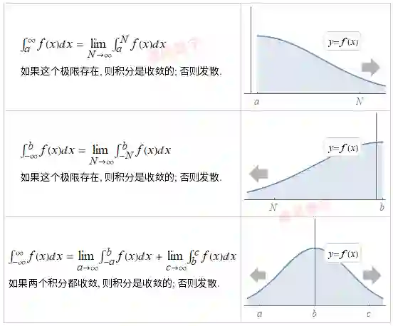 如果能找到这样的极限, 我们就说这个积分收敛; 否则认为该积分发散.