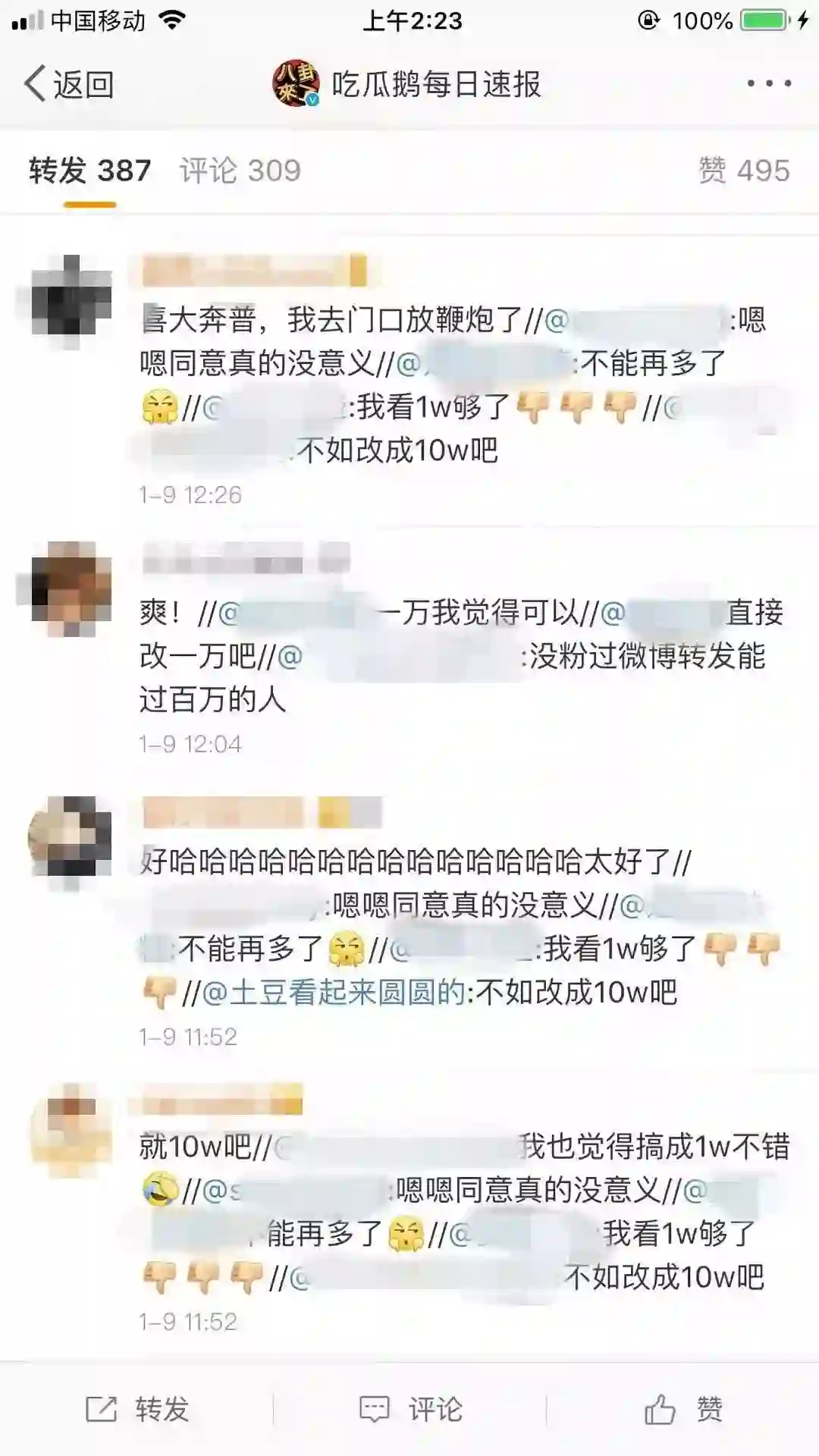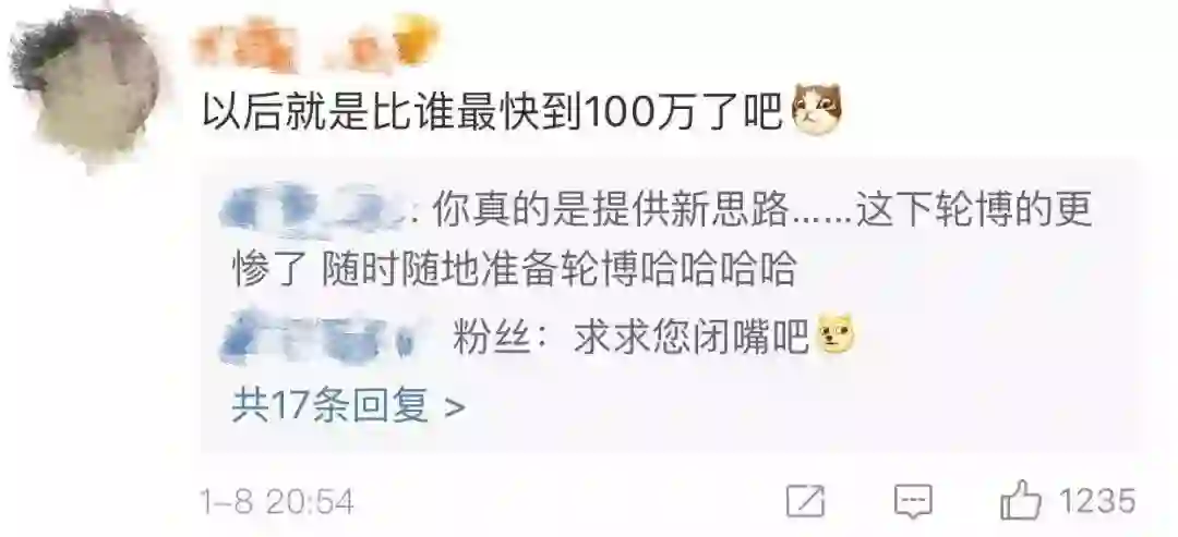 就算是微博转发数,有不少网友认为还会有新的battle方式,比如“以后比的就是谁家先破100万”。