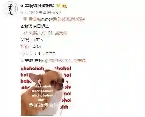 图为孟美岐数据组发布的任务,评论和转发的数量差距较大