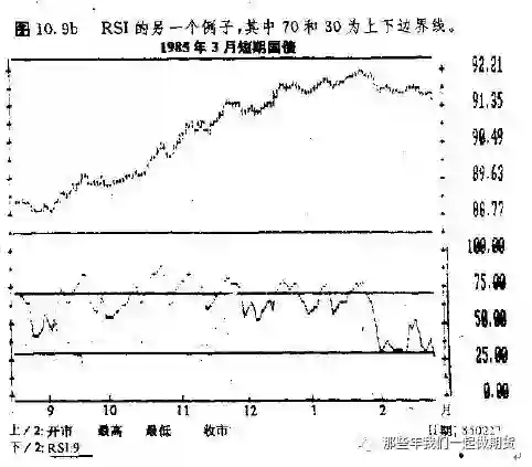 为了更好地演示相互背离原则的应用方法,我们不妨仔细谈谈韦尔斯·王尔德的相对力度指数RSI。在过去几年中,它在技术型期货商中间可谓炽手可热。