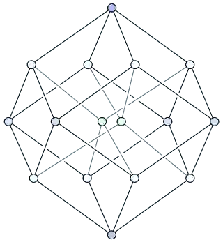 上图按着每一顶点由最底一顶点出发沿着棱走的长度排列。如果我们是要将超正方体用作在并行计算中连接不同处理器网络拓扑基础,则这些图像会非常有用。在超正方体中任意两个顶点之间之间至多有4中不同的路程,并且这里有许多路径是等同的。超正方体还是一个二分图,就像正方形和立方体一样。