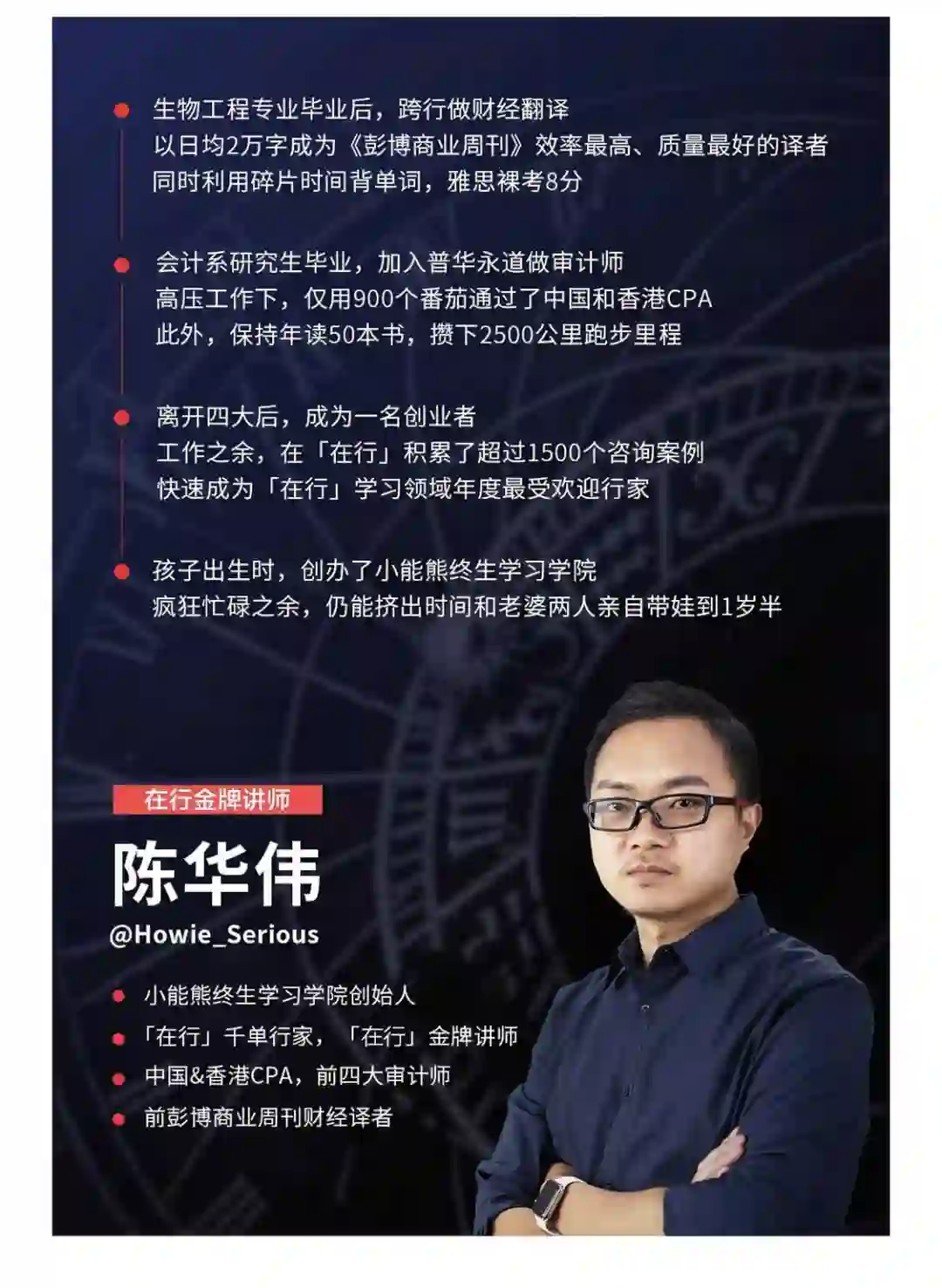 陈华伟转行进四大、业余考取CPA认证、离职创业的实践经历,决定了他为什么能在建立时间管理系统上做得更好。