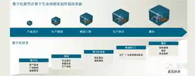 说的神乎其神,其实数字化工厂就是提供了一张底板纸,一个底层数据库,然后把原来的一个个系统,研发、生产、制造、服务什么的都插进去,构成一幅拼图,也就是所谓的“数字化双胞胎工厂”。
