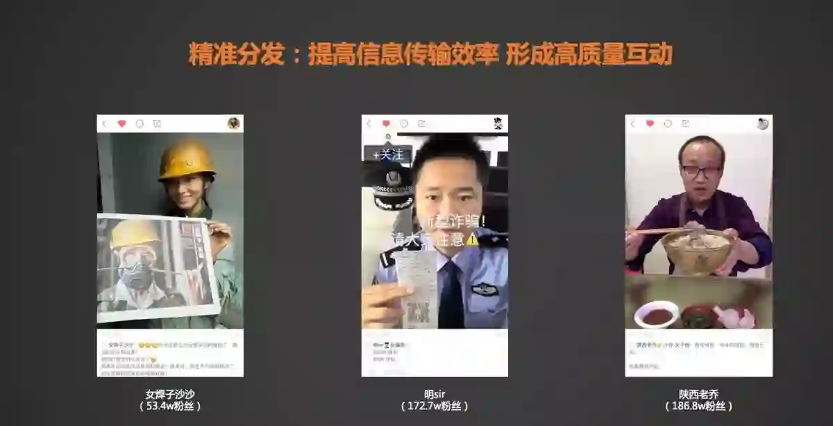首先是普惠。普惠的逻辑非常的简单,关于这个世界的记录应该是所有人参与的,快手和别的产品相比,最典型的一个不同就是不怎么去迎合明星,我们认为明星是360行的其中一行,我们欢迎他的程度跟欢迎其他的359行是一样的。快手是相对去中心化的,大家看到的所有内容,不管拍摄者来自哪个行业、地区,在我们的平台里面并不会有明显的倾斜,只要你是一个热爱生活的人,你生活的美好时刻、你的幸福时光有很多人喜欢看,有很多人给你点赞,我们都会把它呈现出来。